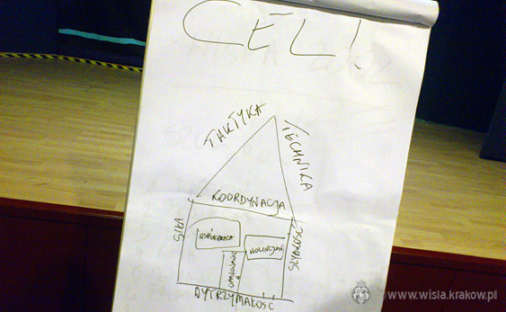 Tomasz Kulawik poświęcił wczorajszą poranną odprawę na to, aby porozmawiać z piłkarzami. Zwrócił uwagę na wiele spraw. Między innymi przypomniał motto Felixa Baumgartnera: „Jedyne co Cię dzieli od osiągnięcia sukcesu, to ta kiepska historyjka, którą sobie wmawiasz, że nie jesteś w stanie go osiągnąć”. Trener poruszył nie tylko kwestie psychologiczne, motywacji i wiary w powodzenie, ale także zwrócił uwagę na znaczenie okoliczności. Zawodnicy musieli określić, czego brakuje na pewnym… rysunku: w domu brakowało klamki, która była kluczem do rozwiązania zagadki. Klamka zaś symbolizowała szczęście, które również jest nieodzowne do osiągnięcia celu.