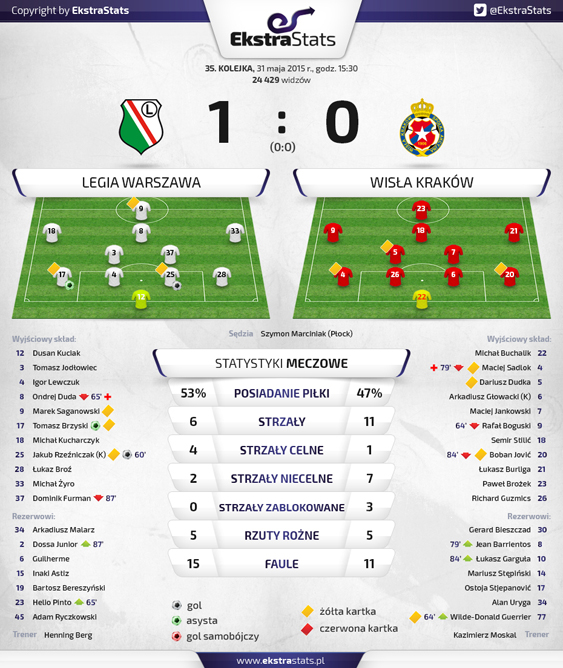 Legia - Wisła: statystyki pomeczowe