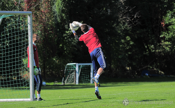 Zajęcia te ograniczyły się do kilku ćwiczeń. Po rozgrzewce wiślacy podzieleni na dwie grupy grali w popularnego "dziadka". W tym samym czasie bramkarze pod wodzą trenera Muchińskiego skupili się na doszkalaniu interwencji po dośrodkowaniach.