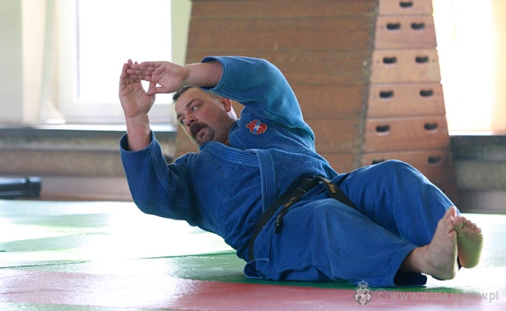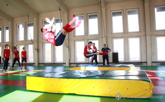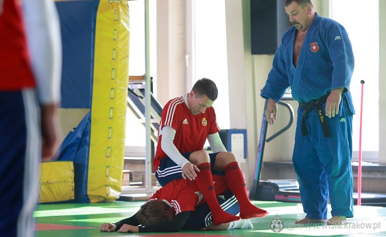 Zawodnicy co prawda na początek rozgrzewali się razem z Danielem Michalczykiem, ale potem w obroty drużynę wziął Piotr Weiss, były wicemistrz Polski w judo, a obecnie trener tej dyscypliny w TS Wiśle. Zawodnicy ćwiczyli między innymi bezpieczny sposób upadania na ziemię, a potem także rzuty na matę.