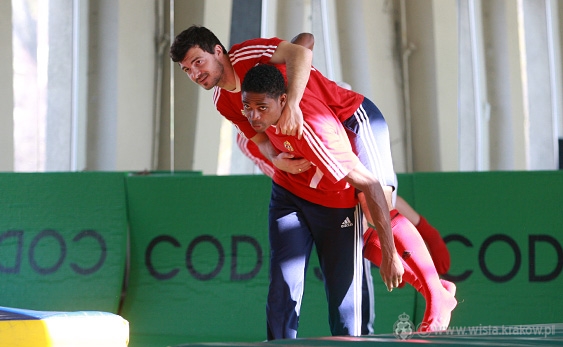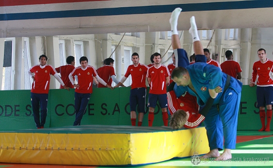 Po tym pożegnaniu piłkarze wyszli na trening. Zgodnie z wcześniejszymi ustaleniami we wtorek piłkarze pracowali w dość nietypowy sposób, bo na sali judo. Nowy trener zespołu, Kazimierz Moskal, postanowił nie zmieniać tego planu, więc przez godzinę zawodnicy pracowali w zupełnie inny sposób niż na co dzień.