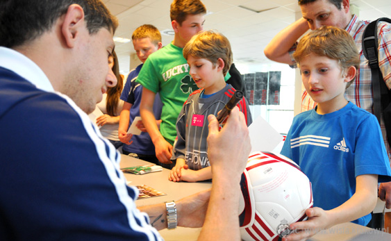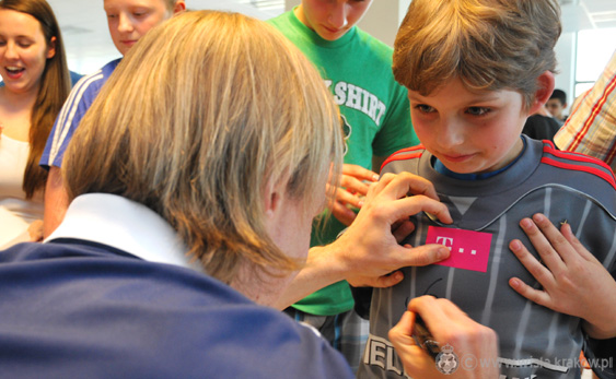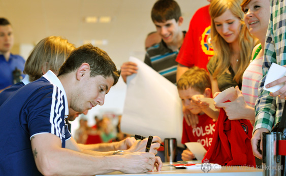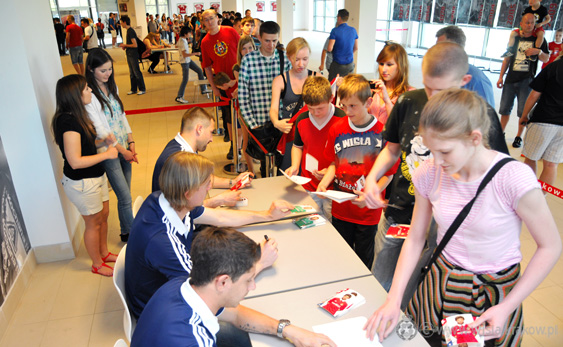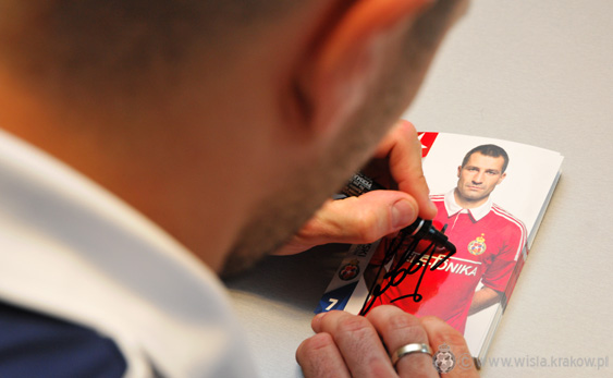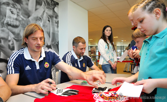 Trójka Wiślaków niezwłocznie zabrała się do podpisywania pocztówek, koszulek, piłek i wszystkiego innego, na czym kibice chcieli mieć podpis piłkarzy.