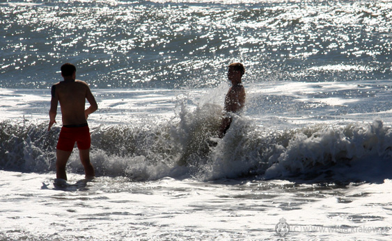 Tym razem piłkarze biegali wzdłuż morza wzburzonego mocnym wiatrem, który wieje od soboty. Mimo wysokich fal znaleźli się śmiałkowie, którzy na koniec zajęć na plaży zdecydowali się wejść do wody. Kąpiel w zafalowanym morzu urządzili sobie Łukasz Burliga i Mateusz Kowalski.