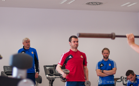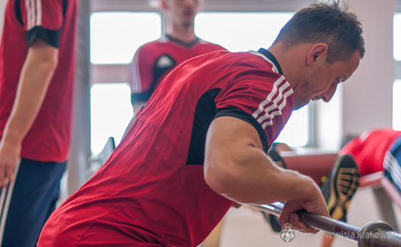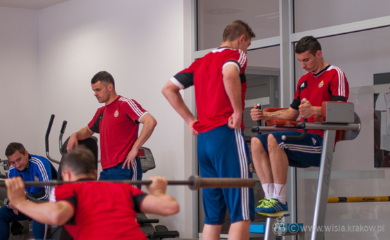 We wtorkowe przedpołudnie Wiślacy skupili się na ćwiczeniach wytrzymałościowych. W siłowni znajdującej się w bazie treningowej w Myślenicach trenerzy przygotowali kilkanaście stacji, na których każdy z zawodników musiał wykonać określoną ilość powtórzeń.