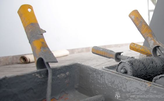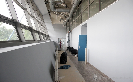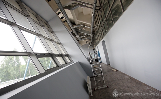 Data publikacji: 07-06-2013 12:07Piłkarze udali się na wypoczynek, jednak korytarze i pomieszczenia, w których przebywają na co dzień, nie są puste. Ich miejsce zajęła bowiem inna drużyna - Budimex, której zadaniem jest odnowienie pomieszczeń Wiślaków.