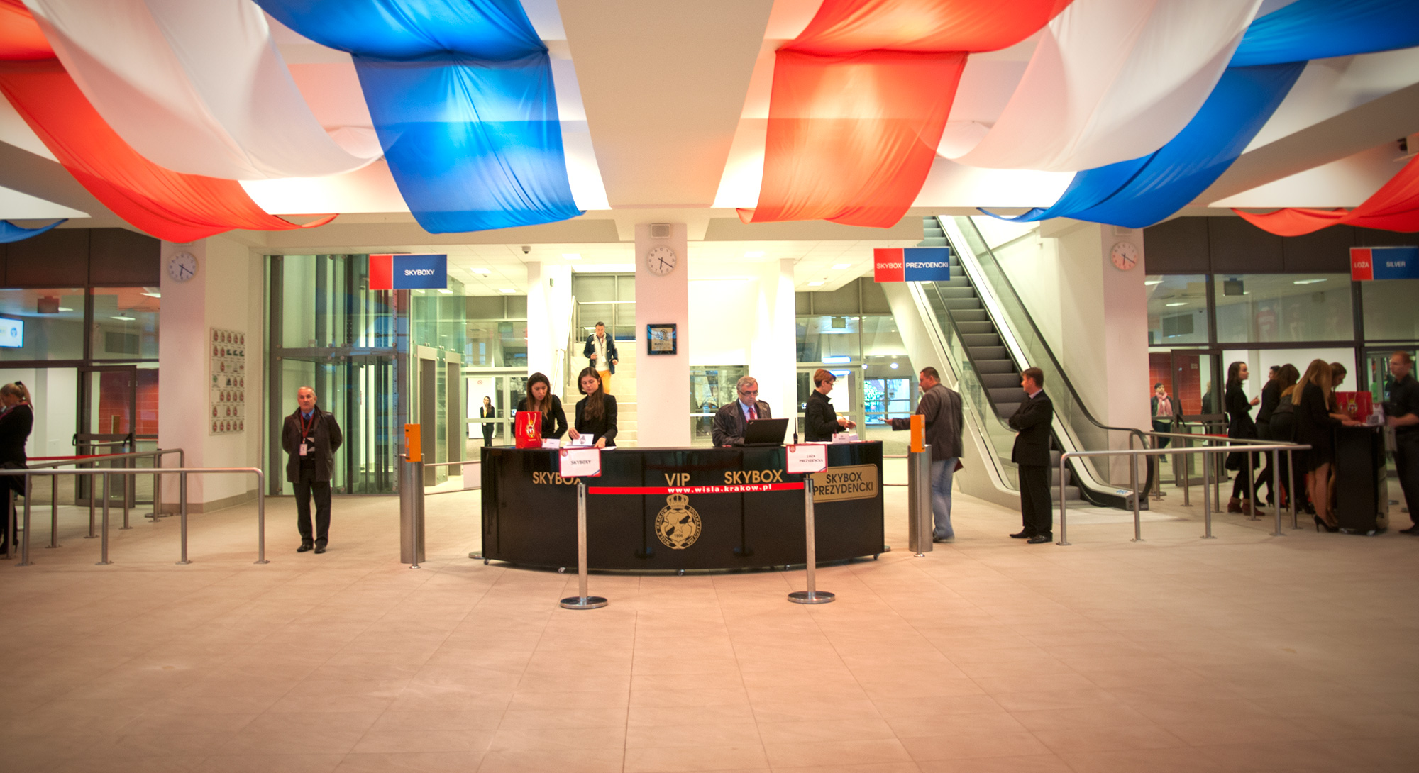 Bilety można nabywać w dni robocze, od poniedziałku do piątku w godzinach od 11.00 do 18.00 w biurze sprzedaży VIP w pokoju nr 51 (1 piętro, wejście między sektorami E23 i E24 na trybunie wschodniej) oraz w dniu meczu z Pogonią od 10.00 do 15.30 w pokoju nr 51 i od 16.00 do końca pierwszej połowy w strefie VIP na trybunie zachodniej – dojście do strefy VIP znajduje się między starą a nową halą Wisły.