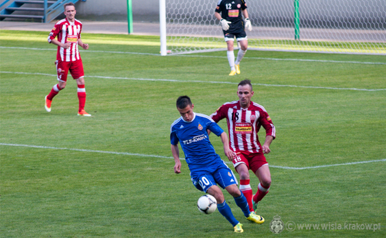 W 30. minucie okazję do podwyższenia wyniku spotkania mieli goście. Po dośrodkowaniu z rzutu wolnego głową strzelał Skrzypek, jednak świetnym refleksem popisał się bramkarz Wisły, Jan Kocoń. Dobitka strzału również nie znalazła drogi do bramki.