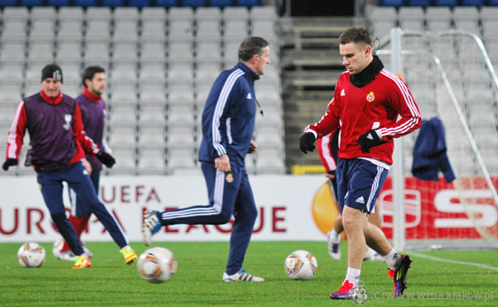 Pierwsze 15 minut było tradycyjnie otwarte dla kibiców i dziennikarzy. Na trybunach pojawiło się kilku fanów z Odense, którzy z uwagą obserwowali rozgrzewkę krakowian. Po kwadransie jednak wszyscy musieli opuścić stadion i reszta treningu odbyła się za zamkniętymi drzwiami.