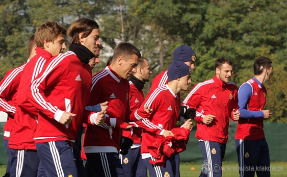 Wiślacy rano przeszli badania, a następnie przez kilkadziesiąt minut ćwiczyli na siłowni. Na boisko boczne drużyna wyszła jedynie na 20 minut, ale i ten krótki czas szkoleniowiec Białej Gwiazdy wykorzystał na szlifowanie elementów gry defensywnej.