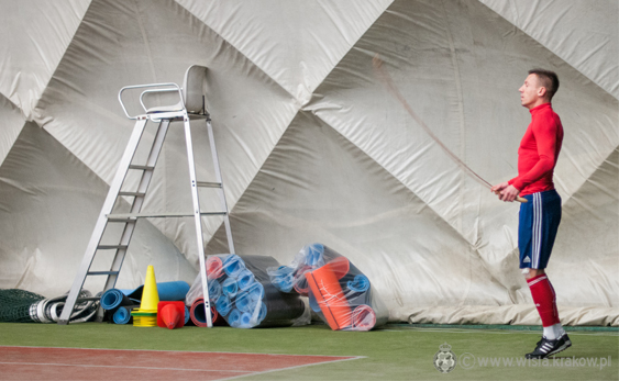 Piątkowym popołudniem zawodnicy Białej Gwiazdy wraz ze sztabem szkoleniowym udali się znów na boisko pod balonem, gdyż odczuwalna temperatura powietrza spadła kilkanaście stopni poniżej zera. Tam odbyły się ostatnie zajęcia podczas pierwszego obozu przygotowawczego. Za takie trzeba je uznać, ponieważ jutro piłkarzy czeka tylko mecz kontrolny z drużyną Chojniczanki Chojnice, a po nim powrót do Krakowa.