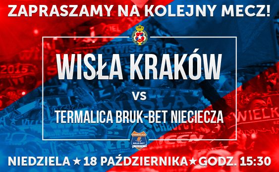 Data publikacji: 14-10-2015 10:26Już w najbliższą niedzielę piłkarze Białej Gwiazdy wybiegną na murawę Stadionu Miejskiego im. Henryka Reymana, aby zmierzyć się przed własną publicznością z drużyną Termaliki Bruk-Bet Nieciecza. Tylko do czwartku 15 października 2015 roku, do północy, sympatycy Wisły mogą nabywać bilety z 15% rabatem!