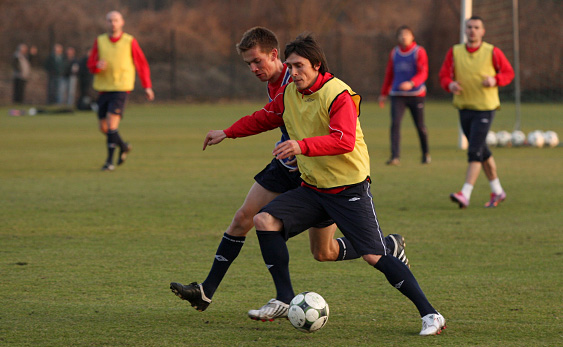 Wiślacy trenowali prawie półtorej godziny. Większość treningu zajęła im gierka, w której zostali podzieleni na dwa mniejsze zespoły. Po zajęciach piłkarze udali się na tradycyjne już zgrupowanie przedmeczowe, a jutro na stadionie Hutnika o 20:00 rozegrają drugi ćwierćfinałowy mecz w Pucharze Polski.