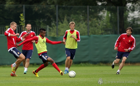 Wiślacy rozpoczęli zajęcia od krótkich ćwiczeń biegowych. Następnie skoncentrowali się na szlifowaniu motoryki pod okiem drugich trenerów. Ostatnim elementem dzisiejszego treningu była 45. minutowa gierka.