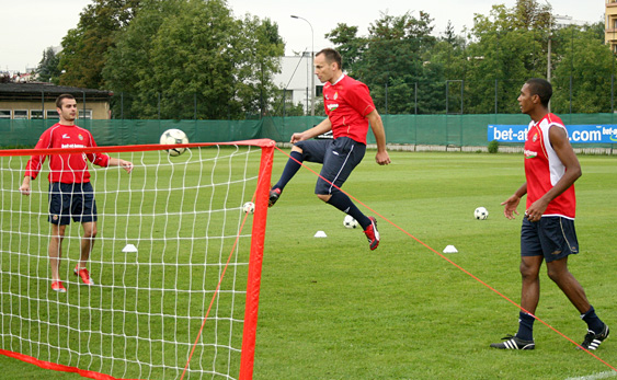 Data publikacji: 04-09-2009 21:41Zawodnicy Białej Gwiazdy w piątek mieli luźniejszy trening. Po kilku ćwiczeniach piłkarze rozegrali mecze w siatkonogę.