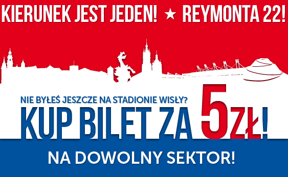 Data publikacji: 23-01-2015 19:30Wisła Kraków przygotowała na rundę wiosenną specjalną promocję dla osób, które nie były jeszcze na nowym stadionie przy Reymonta 22. Każdy taki kibic kupi bilet na dowolny mecz Wisły za jedyne 5 złotych!