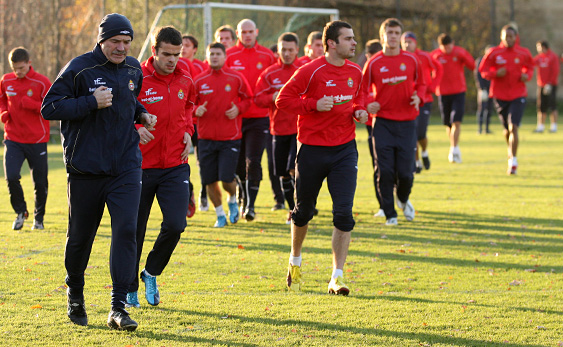 Piotr Brożek natomiast najpierw wziął udział w rozgrzewce, a potem przez ponad godzinę trenował indywidualnie. „Piotrek dzisiaj i jutro nie będzie jeszcze w pełni uczestniczył w zajęciach, ale od środy mamy nadzieję, że już wejdzie w normalny trening. Czuje się już dobrze, nie boli go noga, dlatego jesteśmy bardzo optymistycznie nastawieni do tego piątkowego meczu, jeśli chodzi o jego występ” – podkreślał Janas.