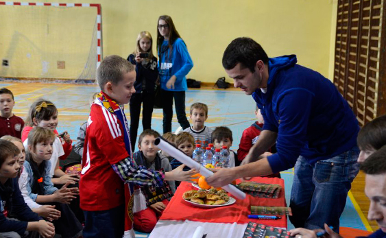 Zawodnicy Wisły wizytowali Publiczną Pozagminną Placówkę Wsparcia Dziennego w Niepołomicach. Dzieci przywitały przybyłych gości gromkimi oklaskami. Na twarzach zebranych, oprócz wielkich uśmiechów, malowały się trójkolorowe barwy Wisły.