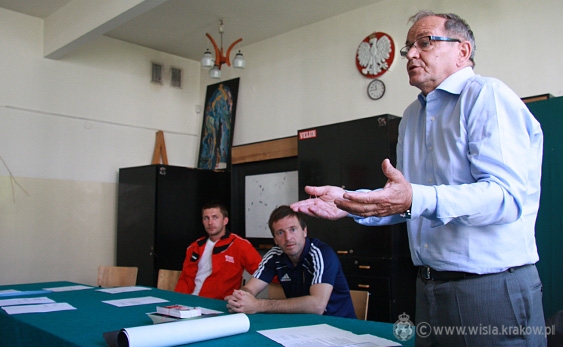 W ciągu najbliższych dni piłkarzy Wisły Kraków czekają dwa bardzo ważne mecze w walce o mistrzostwo Polski. Pierwszy już w środę z Lechem Poznań, drugi zaś w niedzielę z Cracovią Kraków. W związku ze spotkaniem z drugą krakowską drużyną, kibic Wisły, a zarazem Dyrektor Teatru Ludowego w Nowej Hucie Jerzy Fedorowicz, postanowił zorganizować spotkanie fanów z zawodnikami obu drużyn: Maciejem Żurawskim i Piotrem Gizą.