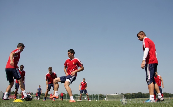 Tam czekał już na nich trener Michał Probierz oraz pola wyznaczone do różnych ćwiczeń. Tym najciekawszym, dzięki zawodom wymyślonym przez trenera, stał się element poświęcony poprawieniu celności strzału.