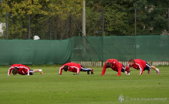Poprawa gry w obronie – to motyw przewodni porannych zajęć prowadzonych przez trenera Wisły Kraków. Drużyna została podzielona na cztery zespoły: dwa defensywne oraz dwa ofensywne, przy czym konfiguracja oraz liczba zawodników zmieniała się w zależności od potrzeby przećwiczenia danego schematu.
