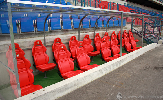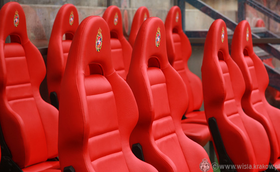 Dziś od rana powstają ławki rezerwowych. Już jutro zawodnicy obydwu drużyn usiądą na osiemnastu czerwonych, skórzanych, dobrze wyprofilowanych fotelach z wyszytym herbem Wisły.