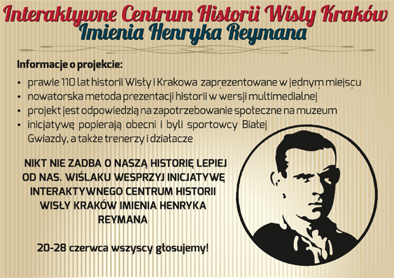 Zachęcamy krakowian, kibiców, ludzi sportu wszystkich dyscyplin do przybycia w piątek na Reymonta 22, a także do głosowania na ten niezwykły projekt od soboty 20 czerwca!