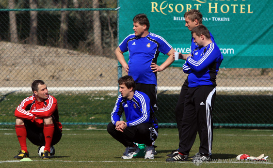 Przez większą część treningu zawodnicy pracowali nad strzałami z dystansu. Zawodnicy uderzali piłkę prosto sprzed bramki, jak i z prawej lub lewej strony. Każdy strzał poprzedzany był wymianą podań z jednym z trenerów, po których piłkarz na maksymalnej prędkości musiał podbiec do piłki. W pewnym momencie trzy uderzania pod rząd – w wykonaniu Tomasa Jirsaka, Macieja Żurawskiego i Łukasza Garguły, wylądowały w samym okienku bramki strzeżonej przez Siergieja Pareiko. „Siergiej, trzymasz się?” – krzyknął w stronę bezradnego bramkarza trener Maaskant. Estończowi przy tych strzałach pozostawało jedynie odprowadzić piłkę wzrokiem.