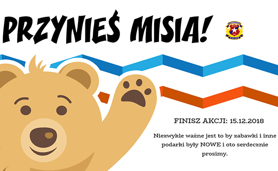 Data publikacji: 20-11-2018 19:26Wielkimi krokami zbliża się grudzień, a co za tym idzie jak co roku ruszamy ze świątecznymi akcjami. Zachęcamy do przyłączenia się do akcji "Przynieś misia" dzięki której już od kilku lat wspólnie obdarowujemy liczne grono dzieci oraz potrzebujących.