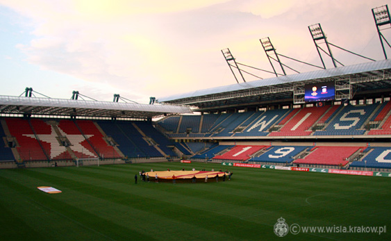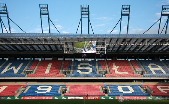 Ławki rezerwowych nabrały również nowego wyglądu – na bokach ławek rezerwowych pojawiły się gwiazdy. Nad jedną z trybun zawisły flagi nawiązujące do zaczynających się w czwartek meczów w Lidze Europejskiej. Klub otrzymał także od organizatorów oryginalne nagranie hymnu rozgrywek, które pierwsze raz zabrzmi podczas czwartkowego pojedynku Wisły z duńskim Odense. Towarzyszyć on będzie wszystkim meczom rozgrywanym w fazie grupowej LE, a w trakcie jego brzmienia na boisku będzie widniało wielkie koło z logo zawodów.