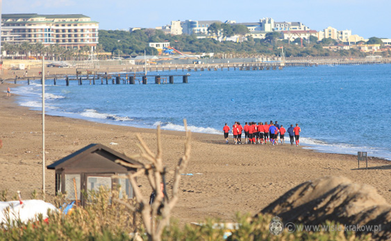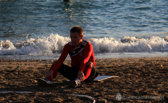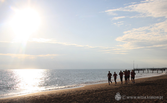 Piłkarze biegli 20 minut w kierunku Alanyi i kolejne 20 minut wracali. Po powrocie na przyhotelową plażę serię ćwiczeń stabilizacyjnych zaordynował jeszcze piłkarzom Daniel Michalczyk.