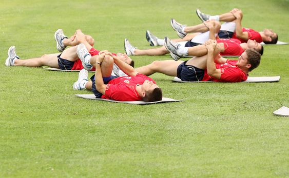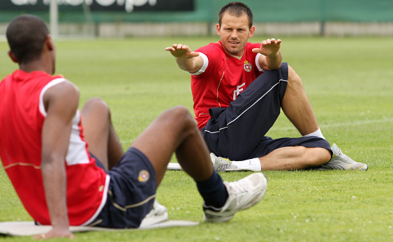 W czwartek dłuższe ćwiczenia odbyli jedynie ci, którzy całe środowe widowisko w Lidze Mistrzów obejrzeli z ławki rezerwowych. Michał Czekaj, Krzysztof Mączyński, Sebastian Janik, Michał Chrapek, Sebastian Leszczak oraz Ilie Cebanu mieli trening strzelecki, a następnie rozegrali krótką gierkę między sobą. Drużynę niebieskich obok Sebastiana Janika oraz Michała Chrapka wsparł kierownik drużyny, Ryszard Czerwiec. Ekipa czerwonych miała w składzie Krzysztofa Mączyńskiego, Michała Czekaja oraz Sebastiana Leszczaka. Między słupkami stanął Ilie Cebanu.