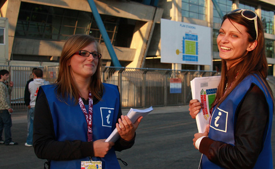Na razie większość przechodniów stanowią osoby, które po prostu przyszły zobaczyć, jak z zewnątrz wygląda stadion. Ci natomiast, którzy potrzebują pomocy w dotarciu na konkretną trybuną, poradzą sobie bez problemu. W kilku miejscach pod stadionem na kibiców czekają osoby, które rozdają plany stadionu.