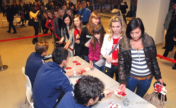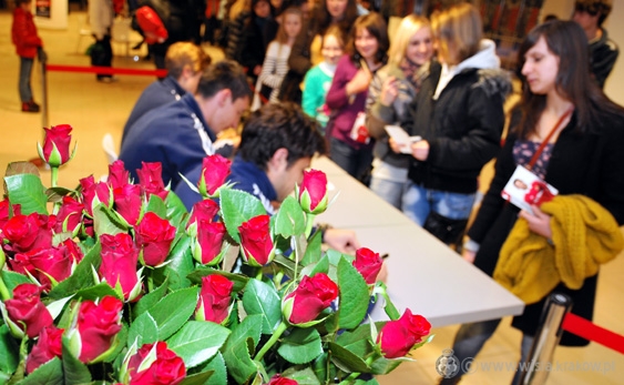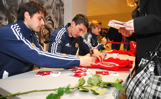 Kiedy Cezary Wilk, Gordan Bunoza i Tsvetan Genkov pojawili się na miejscu, czekało już na nich ponad stu kibiców – w znacznej większości były to panie. W ten szczególny dzień, jakim jest 14 lutego, zawodnicy mieli dla nich specjalny prezent. Pierwsze sto fanek, oprócz autografów na koszulkach, pocztówkach i szalikach, otrzymało od Tsvetana Genkowa czerwone różyczki. Wiślacy również otrzymali od swoich fanek walentynki. Kibice życzyli także piłkarzom powodzenia w meczu ze Standardem, który już pojutrze zostanie rozegrany na stadionie przy Reymonta 22.