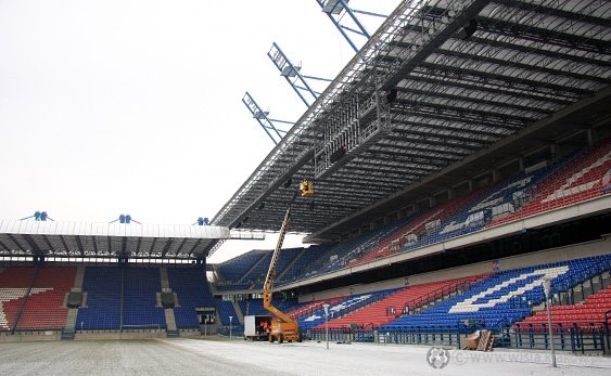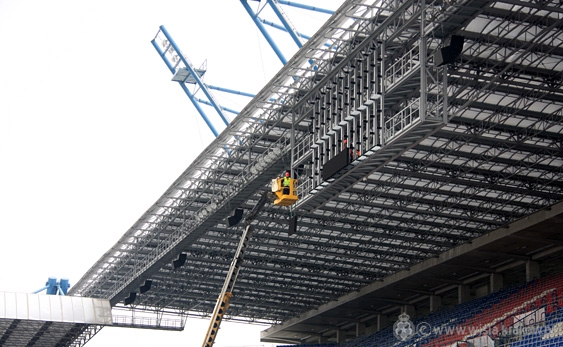 Data publikacji: 21-02-2011 13:40Z samego poranka rozpoczął się, długo oczekiwany przez kibiców, montaż telebimów. Na początek ekipa montująca ekrany rozpoczęła prace nad telebimem mieszczącym się na trybunie wschodniej.