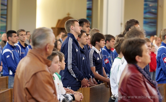 Uroczystej koncelebrowanej Mszy Świętej o godz. 19.00 przewodniczył ksiądz Infułat Bronisław Fidelus, wikariusz generalny Archidiecezji Krakowskiej, kazanie wygłosił ksiądz Jarosław Chlebda, reprezentujący Parafialny Klub Sportowy „Jadwiga”. Współorganizatorami pielgrzymki byli znani kibicom krakowskich drużyn ks. Andrzej Jeleń - diecezjalny kapelan środowisk sportowych oraz ks. Henryk Surma CM.