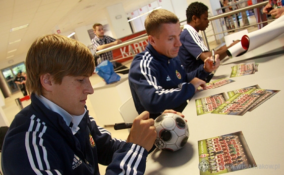 Cezary Wilk, Łukasz Garguła i Kew Jaliens od godz. 14:00 czekali na fanów w Strefie Kibica. Spotkanie z Wiślakami wielu fanów połączyło z kupnem biletu na pojedynek z Ruchem Chorzów.
