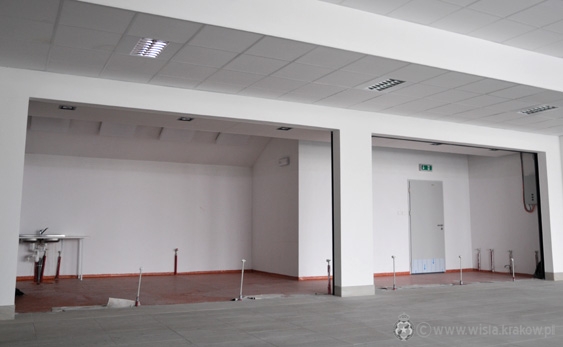 Aktualnie na trybunie trwa montowanie ściągniętych na czas prac telewizorów i sufitów podwieszanych. Sprzątane są też strefy dla kibiców znajdujące się na parterze i drugim piętrze.