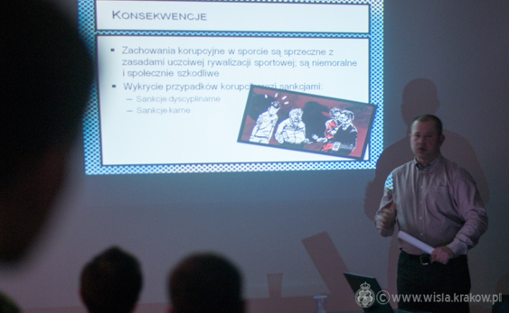 Pierwsze z nich swoją tematyką obejmowało zakres przeciwdziałania korupcji i ustawianiu zawodów sportowych w klubach piłkarskich. Zawodnicy, dzięki przedstawionej prezentacji, pogłębili wiedzę na temat przepisów dyscyplinarnych PZPN, poznali przykłady afer korupcyjnych w Europie, a także zostali poinformowani, jakie konsekwencje grożą osobom biorącym udział w tzw. „match-fixingu”.