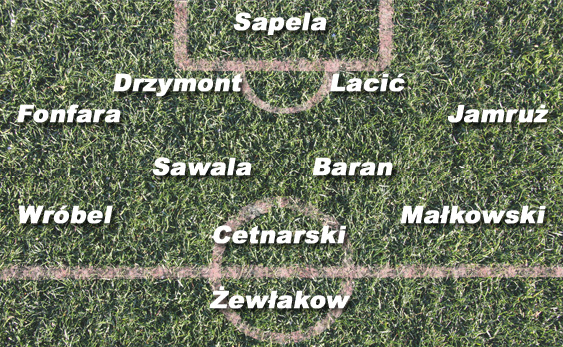 POMOC: Jest to zdecydowanie najsilniejsza formacja bełchatowian. Po prawej stronie z powodzeniem może zagrać Tomasz Wróbel, który na pozycji skrzydłowego może wykorzystać swoje największe atuty, czyli szybkość i wyszkolenie techniczne. W środku pola zobaczymy dwóch solidnych, twardo grających zawodników – Szymona Sawalę i Grzegorza Barana. Obaj skupią się na grze defensywnej, zagęszczaniu środka pola i wspomaganiu obrońców. Drugim skrzydłowym jest Maciej Małkowski, również szybki i dobrze wyszkolony technicznie zawodnik, który dodatkowo potrafi doskonale egzekwować rzuty rożne i wolne. Najbardziej wysuniętym pomocnikiem jest Mateusz Centarski, który w Bełchatowie stał się następcą Łukasza Garguły. Cetnarski dysponuje niezłym przeglądem pola, ale potrzeba mu czasu, żeby ustabilizować poziom gry i swojej formy.