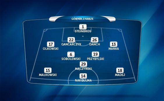 Obrona: W tej formacji jest najwięcej znaków zapytania. Kontuzje uniemożliwiają występ trzem zawodnikom, nie pojawią się Oleksandr Szeweluchin, Antoni Łukasiewicz i Mariusz Magiera. Na prawej obronie w związku z odejściem Michaela Bembena zagra Paweł Olkowski. W środku - obok Adama Dancha powinniśmy zobaczyć Seweryna Gancarczyka, który w sparingach sprawdzany był na tej pozycji. Rafał Kosznik wrócił do Bełchatowa, przynajmniej na razie, więc zabrzanie muszą szukać alternatywnego rozwiązania. W tej sytuacji na lewej stronie zobaczymy Macieja Mańkę, mającego za sobą udany sezon w GKS Tychy, gdzie występował właśnie na tej pozycji.