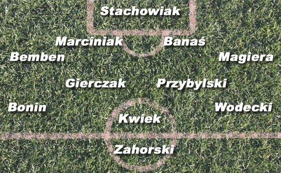 POMOC: Na prawym skrzydle pomocy trener Nawałka prawdopodobnie wystawi Grzegorza Bonina, który obecnie jest jednym z najlepszych w szeregach zabrzan. Bonin to szybki i dobrze wyszkolony piłkarz, lubiący być ciągle pod grą. Jako defensywni pomocnicy mogą wystąpić Piotr Gierczak i Mariusz Przybylski. Obaj będą odpowiedzialni za skuteczny odbiór piłki, zagęszczanie środka pola i skuteczne asekurowanie obrońców – zwłaszcza tych bocznych. Na lewym skrzydle z powodzeniem może zagrać Marcin Wodecki – szybki piłkarz ze zmysłem do technicznej, kombinacyjnej gry. Na pozycji „fałszywego napastnika” zagra Aleksander Kwiek, który dysponuje dobrym przeglądem pola i potrafi obsłużyć partnera dobrym i dokładnym podaniem.