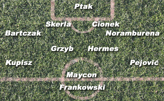 POMOC: Na środku pomocy występuje dwóch piłkarzy odpowiadających za zabezpieczenie tyłów. Są to Rafał Grzyb i Hermes. Obaj bardzo dobrze potrafią wywiązać się z tych obowiązków, a jeśli chodzi o ich grę w ofensywie, to warto zwrócić uwagę na ich strzały z dystansu. Na prawej stronie pomocy pewne miejsce ma Tomasz Kupisz. Nie robi on aż tak dużego wrażenia swoją grą, jak na początku poprzedniego sezonu, ale to nadal dobry skrzydłowy, który potrafi urwać się pilnującemu go rywalowi. Miejsce na lewej flance obstawić może Luka Pejović. To nominalny lewy obrońca, ale już kilka razy w tym sezonie grał na skrzydle, więc i tym razem trener Michniewicz może wystawić go na tej pozycji. Za taką opcją przemawia fakt lepszego zabezpieczenia defensywy przez Pejovicia od innych piłkarzy, którzy mogą pojawić się na tej pozycji, co w meczu z Wisłą może być niezbędne.