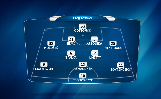 Pomoc: Tę formację również nie ominęły kontuzje. Do gry niezdolni są Vojo Ubiparip i Szymon Drewniak. Wątpliwy jest także występ Rafała Murawskiego, który ma problem mięśniowy, toteż zszedł z murawy jeszcze w pierwszej połowie meczu z Koroną. Lech Poznań preferuje ustawienie 1-4-2-3-1, więc zabezpiecza obronę dwoma środkowymi pomocnikami. Powraca do zdrowia Łukasz Trałka, pytanie brzmi: kto będzie jego partnerem? Przyzwoity mecz z Koroną rozegrał na tej pozycji Dariusz Formella, którego pamiętamy z letniego sparingu , gdy jako napastnik zdobył dla Lecha dwie bramki. Inną opcją jest ustawienie tam Karola Linetty. Na lewym skrzydle zagra Gergo Lovrencsics, a na prawym możliwy jest występ dynamicznego Szymona Pawłowskiego. Ostatnio wystąpił na tej pozycji wspomniany wcześniej Linetty, jednak w obliczu tylu kontuzji możliwe są kolejne przetasowania. W rolę ofensywnego pomocnika wcieli się Kasper Hamalainen.