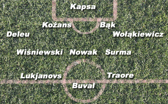 OBRONA: Z prawej strony defensywy wystąpi Luis Santos Deleu. Brazylijczyk pokazuje się z dobrej strony w ofensywie – potrafi wspomóc partnera w ataku, dobrze dośrodkować. W tym aspekcie gry może sprawić sporo problemów skrajnym graczom Wisły. Jako środkowi obrońcy mogą zagrać Sergejs Kożans oraz Krzysztof Bąk. Obaj są wysokimi graczami, dobrze czują się w grze powietrznej, wprowadzają sporo spokoju w szeregi defensywy. Ich partnerem w bloku obronnym jest świeżo upieczony reprezentant Polski, czyli Hubert Wołąkiewicz. Lewa obrona to nowa pozycja dla tego piłkarza, który do tej pory występował jako środkowy obrońca albo defensywny pomocnik. Największymi autami Wołąkiewicza jest twarda i nieustępliwa gra oraz zdecydowanie.