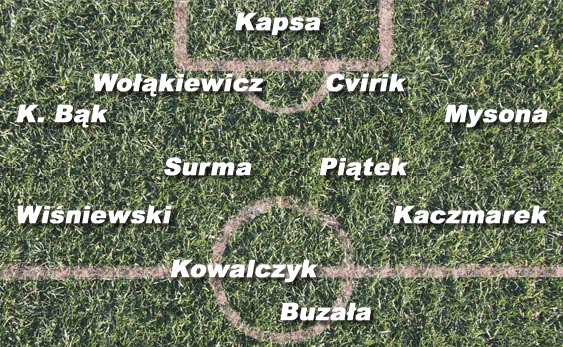 POMOC: Na prawej stronie pomocy być może zagra Piotr Wiśniewski. „Wiśnia” gra bardzo ofensywnie, wtedy może wykorzystać swoją szybkość i technikę. Z powodzeniem może zagrać w linii ataku. Groźne będą jego dynamiczne wejścia w pole karne z prawej strony. Trener Kafarski może będzie chciał zabezpieczyć środek pola i przeciwko Wiśle pośle dwóch walczaków – Łukasza Surmę i Karola Piątka. To zawodnicy dość podobni do siebie, o zbliżonych predyspozycjach i umiejętnościach. Ich głównym zadaniem jest przerywanie ataków rywala, zagęszczanie środka pola i asekuracja środkowych obrońców. Surma może być przydatny w grze ofensywnej. Potrafi mocno i celnie strzelić na bramkę, a przede wszystkim posiada niezły przegląd pola, dzięki czemu może obsłużyć partnera dokładnym podaniem. Z racji swojego doświadczenia Surma może częściej podchodzić pod linię ataku i próbować celnie zagrywać do wychodzących na czystą pozycję zawodników. Przy takim układzie więcej obowiązków defensywnych przejmuje Piątek. Na lewej stronie pomocy najprawdopodobniej zagra Marcin Kaczmarek. Były zawodnik kieleckiej Korony świetnie gra lewą nogą, jest dynamicznym i szybkim piłkarzem. Bardzo groźne są jego wrzutki w pole karne z lewej nogi, a także zdecydowane wejścia pod bramkę rywala, najczęściej zakończone strzałem. Kaczmarek i Wiśniewski najpewniej będą zamieniać się pozycjami w czasie meczu, a wtedy Kaczmarek będzie próbował schodzić do środka boiska i próbować strzału z lewej nogi.