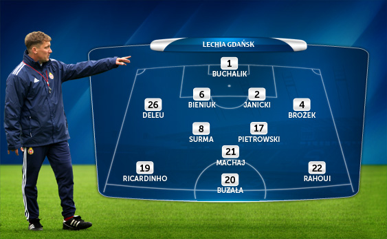 Pomoc: Jeśli chodzi o pomoc, to możemy być niemal pewni, że parą pomocników występujących przed linia obrony będą kapitan Łukasz Surma oraz Marcin Pietrowski. Głównym ich zadaniem będzie wspomaganie linii obronnej oraz asekuracja strefy środkowej lub bocznej na wypadek straty piłki. Ważną różnicą między tymi dwoma zawodnikami są zdolności gry obronnej, a przede wszystkim gry głową. W porównaniu do Pietrowskiego (184 cm) bowiem Łukasz Surma (173 cm) nie zawsze jest w stanie zabezpieczyć defensywę na wypadek podań za linię pomocy. W przypadku kontrataku należy uważać na Pietrowskiego, który często wykorzystuje swoje nienajgorsze umiejętności techniczne i stara się stworzyć przewagę w ataku. Jest to również o tyle istotne, że nie zawsze inny zawodnik asekuruje jego miejsce, przez co pojawia wolny obszar boiska. Cięższym wyborem będzie ustalenie pozostałych 3 pomocników i napastnika. Patrząc na rundę wiosenną w czterech meczach ani razu nie było takiego samego ustawienia. Zawodnikiem najczęściej występującym na swojej pozycji, jest prawoskrzydłowy Ricardinho, który jednak w ostatnim meczu z Piastem zagrał jako ofensywny pomocnik. W meczach Lechii w tej rundzie na trzech ofensywnych pozycjach w pomocy zagrało łącznie dziewięciu zawodników. Przypuszczalnie więc na prawej stronie zagra Ricardinho, jako ofensywny pomocnik zagra Mateusz Machaj, na którego szczególnie liczą w Gdańsku, jeśli chodzi o ofensywę po odejściu Razacka Traore, a na lewej Mohammed Rahoui, czyli zestawienie, jakie wystąpiło w zwycięskim meczu z Koroną Kielce.