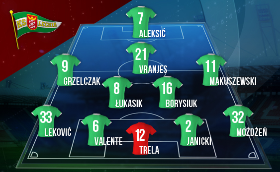Atak: W obliczu kary zawieszenia (dwa mecze) za czerwoną kartkę oraz przesunięcia do rezerw nie zagra w meczu przeciwko Białej Gwieździe Zaur Sadajew. Do pierwszej drużyny został przywrócony za to Danijel Aleksić i wiele wskazuje na to, że Serb od razu wskoczy do podstawowego składu. W rezerwie jest również Adam Buksa, również były zawodnik Wisły Kraków, który w końcówce ostatniego spotkania przeciwko Lechowi Poznań pojawił się na boisku. Trener Machado może zdecydować się również na wariant z Piotrem Grzelczakiem w napadzie, a wtedy od pierwszej minuty zagrałby pewnie Bartłomiej Pawłowski.