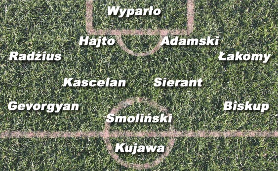 POMOC: Na pozycji prawego skrzydłowego z pewnością zagra Vahan Geworgyan. Ormianin z polskim paszportem błyszczy w tej rundzie. Strzela bramki, asystuje – jest jedną z najważniejszych postaci ŁKS-u. Lubi grę kombinacyjną, potrafi dynamicznie wejść w pole karne i obsłużyć partnera dobrym podaniem. Jego sporym atutem jest szybkość. Jako defensywnych pomocników być może zobaczymy Mladena Kascelana i Roberta Sieranta. Obaj mają podobne zadania – przede wszystkim muszą przerywać akcje rywala i zagęszczać środek pola. Ich zadaniem jest również zabezpieczanie bocznych sektorów boiska w chwili, kiedy boczni obrońcy są zaangażowani w grę ofensywną. Defensywni pomocnicy odciążają także ofensywnego pomocnika od sporej ilości obowiązków obronnych. Na lewej stronie pomocy być może zagra Jakub Biskup. Były zawodnik Odry Wodzisław charakterystyką przypomina Gevorgyana. Szybki, niezły technicznie, lubi mieć piłkę przy nodze. U Biskupa szwankuje jednak w dużym stopniu skuteczność. Pozycję ofensywnego pomocnika może z powodzeniem obsadzić młody Marcin Smoliński. Niedawna nadzieja warszawskiej Legii gra teraz w Łodzi i stara się udowodnić, że może coś jeszcze osiągnąć w dorosłej piłce. Za Smolińskim przemawia dobra technika i niezły przegląd pola. Smoliński celnie podaje, ale potrafi i celnie strzelić na bramkę, głównie z lepszej lewej nogi. Minusem pomocnika ŁKS-u jest brak dobrych warunków fizycznych, co z pewnością przydaje się walcząc o piłkę w środku pola.