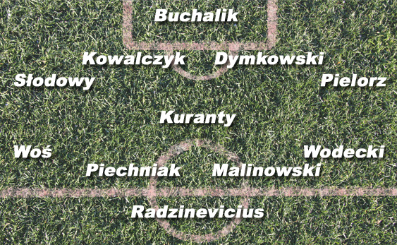 POMOC: Linia pomocy jest dość ciekawie zestawiona. Najwięcej obowiązków defensywnych (jeśli pojawi się w pierwszym składzie) będzie miał Jacek Kuranty. Rozbijanie ataków rywala, asekuracja linii obrony – to jego główne obowiązki. W środku pola występu mogą spodziewać się również Piotr Piechniak i Marcin Malinowski. Piechniak znany jest z dobrej, kombinacyjnej gry i niezłego wyszkolenia technicznego. Przez długi czas swojej kariery grywał jako prawy pomocnik, ale potrafi dostrzec lepiej ustawionego rywala, dokładnie podać i podejść pod linię obrony przeciwnika. Dzięki tym walorom może sprawdzić się w środku pola. Obok niego może zagrać popularny „Malina”, który dobrze prezentuje się w odbiorze piłki. On z kolei jest w stanie uzupełniać Piechniaka i wyręczać go w obowiązkach obronnych. Skrzydłowymi u trenera Moskala są Jan Woś i Marcin Wodecki. Woś może pociągnąć zespół w trudnych momentach, a jesgo największym atutem jest doświadczenie. Ciężko wyobrazić sobie jedenastkę Odry bez jej ikony, czyli właśnie Wosia. Wodzisławską nadzieją jest młody Wodecki, który jeszcze musi ograć się Ekstraklasie. Już dziś potrafi błysnąć w lidze, ale nadal są to tylko błyski.