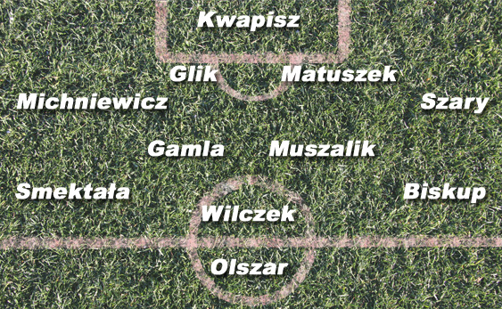 POMOC: Prawym pomocnikiem w ekipie Dariusza Fornalaka jest Jakub Smektała. To szybki, młody i utalentowany zawodnik, który jeszcze musi ustabilizować formę na równym poziomie. Smektała potrafi pociągnąć grę do przodu i sporo namieszać w szeregach rywala. Parę defensywnych pomocników stworzą kapitan zespołu Paweł Gamla i Mariusz Muszalik. Gamla to typowy, ligowy walczak i jednocześnie jeden z liderów drużyny. Potrafi odnaleźć się pod bramką rywala i oddać celny strzał. Muszalik sprawdza się w defensywie, odbiera piłkę, wspomaga kolegów z obrony, ale angażuje się również w ataki. Sporo widzi na boisku, potrafi obsłużyć partnera dokładnym podaniem. Warto dodać, że dobrze mu wychodzą strzały z rzutów wolnych. Na lewej strony pomocy prawdopodobnie zobaczymy Jakuba Biskupa. To kolejny były zawodnik Odry Wodzisław w kadrze Piasta. Biskup sprawdza się w roli lewoskrzydłowego, stara się grać dynamicznie i kombinacyjnie. Sporo gorzej u niego wygląda skuteczność, ponadto nie może być pewny miejsca w składzie, bo do gry powrócił już Lumir Sedlacek. Jako wysunięty ofensywny pomocnik zagra Kamil Wilczek, jeden z najlepszych piłkarzy młodego pokolenia. Reprezentant do lat 21 dobrze czuje się z piłką przy nodze, chce ją mądrze rozgrywać. Dużo widzi na boisku i ma zmysł do kreowania ciekawych akcji. Jest jednym z najbardziej wartościowych graczy Piasta.